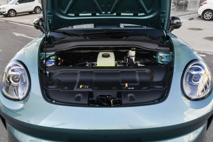 外形方面,新车的前脸采用的是封闭式格栅设计,风格比较圆润,大灯组采用了圆形熏黑处理,内部集成有透镜以及环形日行灯,风格显得比较呆萌,也是欧拉家族的标志性设计语言。